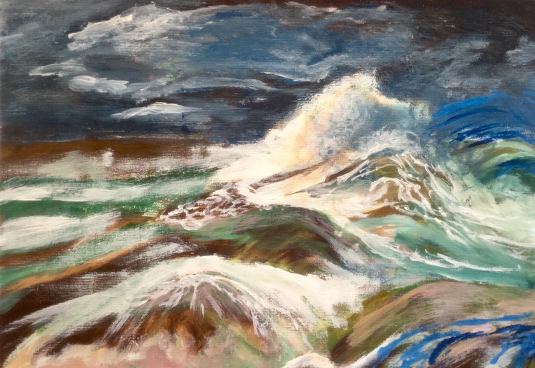 It’s such a long time since the last time I drew an abstract with oil color. And here is the result. The moment of sunrise on the beach with a lot of pine trees watching the sun.
