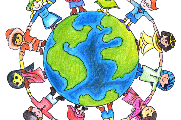 This design is for a children book cover about children all over the planet. Author: Nancilee Wydra. 2015.
